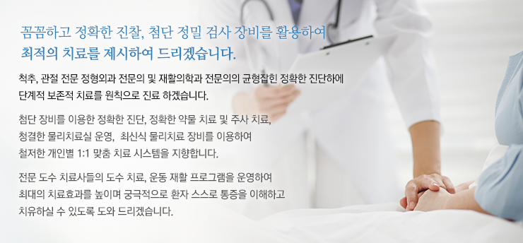 최고의 의료진과 풍부한 치료경험, 편안함과 친절로 정성을 다하겠습니다.