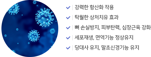 세포 손상예방과 면역 증강, 노화 방지의 효과가 있습니다. 일반적으로 뉴트리헥스와 병용하여 보충을 권장합니다.