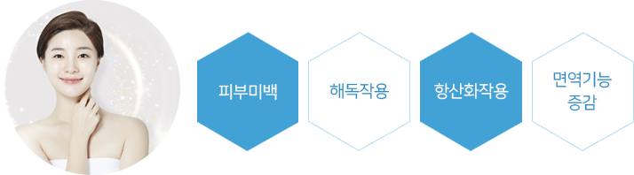 글루타치온 성분이 피부를 하얗게 만들고 강력한 항산화 작용을 통해 노화를 방지시켜주며 면역력을 증진 시켜주는데 효과적입니다.
